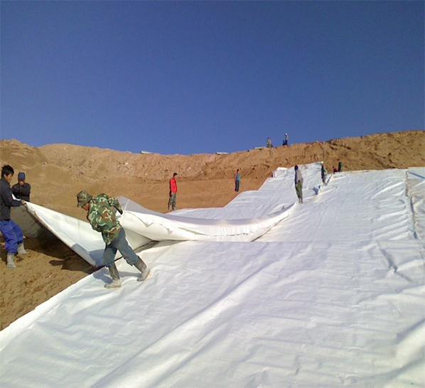 土工布作為土工膜的保護層,使保護防滲層不受損壞。為減少紫外線照射,增加抗老化性能,最好采用埋入法鋪設(shè)。