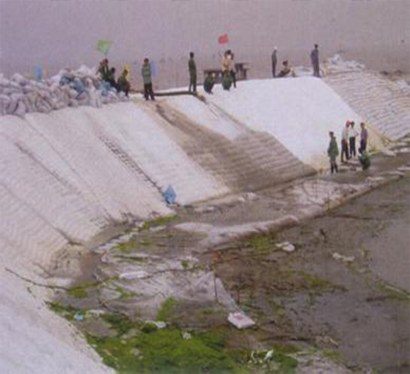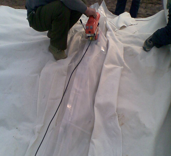 兩布一膜是以塑料薄膜作為防滲基材,與無紡布復(fù)合而成的土工防滲材料。它的防滲性能主要取決于塑料薄膜的防滲性能。目前防滲應(yīng)用的塑料薄膜,主要有聚氯乙烯(PVC)和聚乙烯(PE),它們是一種高分子化學(xué)柔性材料,比重較小,延伸性較強,適應(yīng)變形能力高,耐腐蝕,耐低溫,抗凍性能好。膜的厚度一般為0.30-2.00mm。主要機理是以塑料薄膜的不透水性隔斷土壩漏水通道,以其較大的抗拉強度和延伸率承受水壓和適應(yīng)壩體變形。而無紡布亦是一種高分子纖維化學(xué)材料,通過針刺或熱粘成形,具有較高的抗拉強度和延伸性。目前應(yīng)用于復(fù)合的無紡布只要有:滌綸短纖針刺土工布、聚酯長絲紡粘土工布、扁絲塑編布等。它與塑料薄膜結(jié)合后,不僅增大了塑料薄膜的抗拉強度和抗穿刺能力,而且由于無紡布表面粗糙,增大了接觸面的摩擦系數(shù),有利于復(fù)合土工膜及保護層的穩(wěn)定。同時,它們對細菌和化學(xué)作用有較好的耐侵蝕性,不怕酸、堿、鹽類的侵蝕。