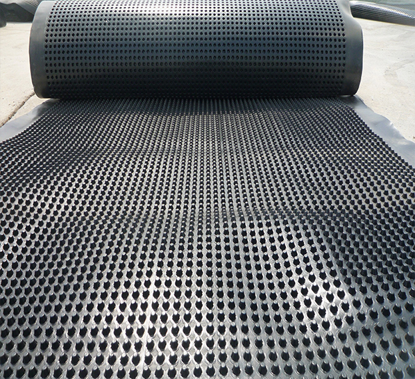 圓錐突臺的頂面膠接一層過濾土工布,以阻止泥土微粒通過,從而避免排水通道阻塞使孔道排水順暢。 傳統(tǒng)的排水方式使用磚石瓦塊作為導(dǎo)濾層、使用較多的鵝卵石或碎石作為濾水層、將水排到指定地點。而用排水板取代鵝卵石濾水層來排水則省時、省力又節(jié)能、節(jié)省投資、還能降低建筑物的荷載。