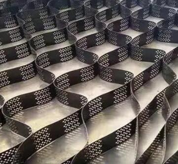 土工格室是由高強(qiáng)度的HDPE或PP共聚料寬帶,經(jīng)過強(qiáng)力焊接或鉚接而形成的一片網(wǎng)狀格室結(jié)構(gòu)。它伸縮自如,運(yùn)輸時(shí)可縮疊起來,使用時(shí)張開并又充填土石或混凝土料,構(gòu)成具有強(qiáng)大側(cè)向限制和大剛度的結(jié)構(gòu)體。它可用來做為墊層,處理軟弱地基增大地基的承載能力,也可鋪設(shè)在坡面上構(gòu)成坡面防護(hù)結(jié)構(gòu),還可以用來建造支擋結(jié)構(gòu)等。