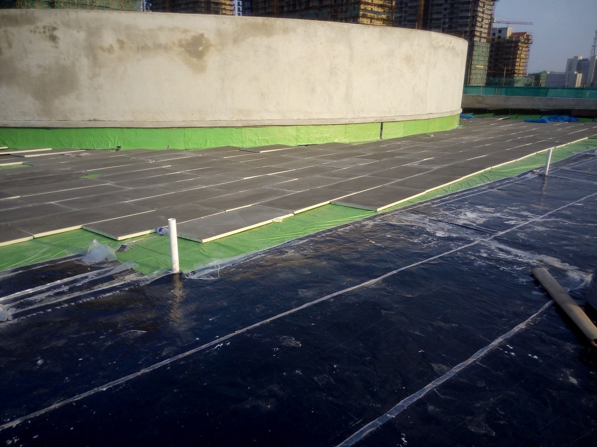 平面和立面部位的防水層施工完畢并經檢查驗收合格后,宜在防水層上虛鋪一層瀝青防水卷材做保護隔離層,鋪設時宜用少許膠粘劑固定,以防在澆筑細石混凝土剛性保護層時發(fā)生位移。保護隔離層鋪設完畢,即可澆筑40~50mm厚的細石混凝土保護層。在澆筑細石混凝土的過程中,切勿損失保護隔離層和卷材防水層。如有損失必須及時對卷材防水層進行修補,修補后再繼續(xù)澆筑細石混凝土保護層,以免留下滲漏隱患。